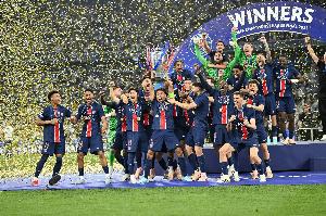 体育资讯6月1日讯 欧冠决赛,巴黎5-0国米,捧起冠军奖杯。
